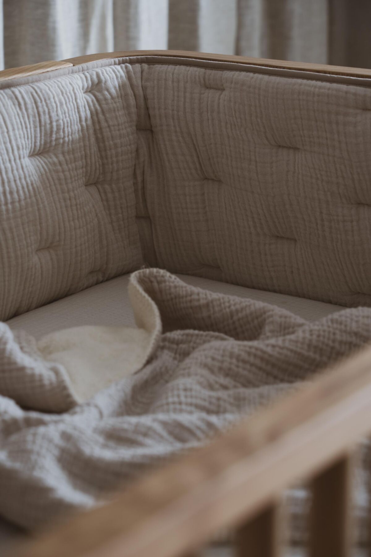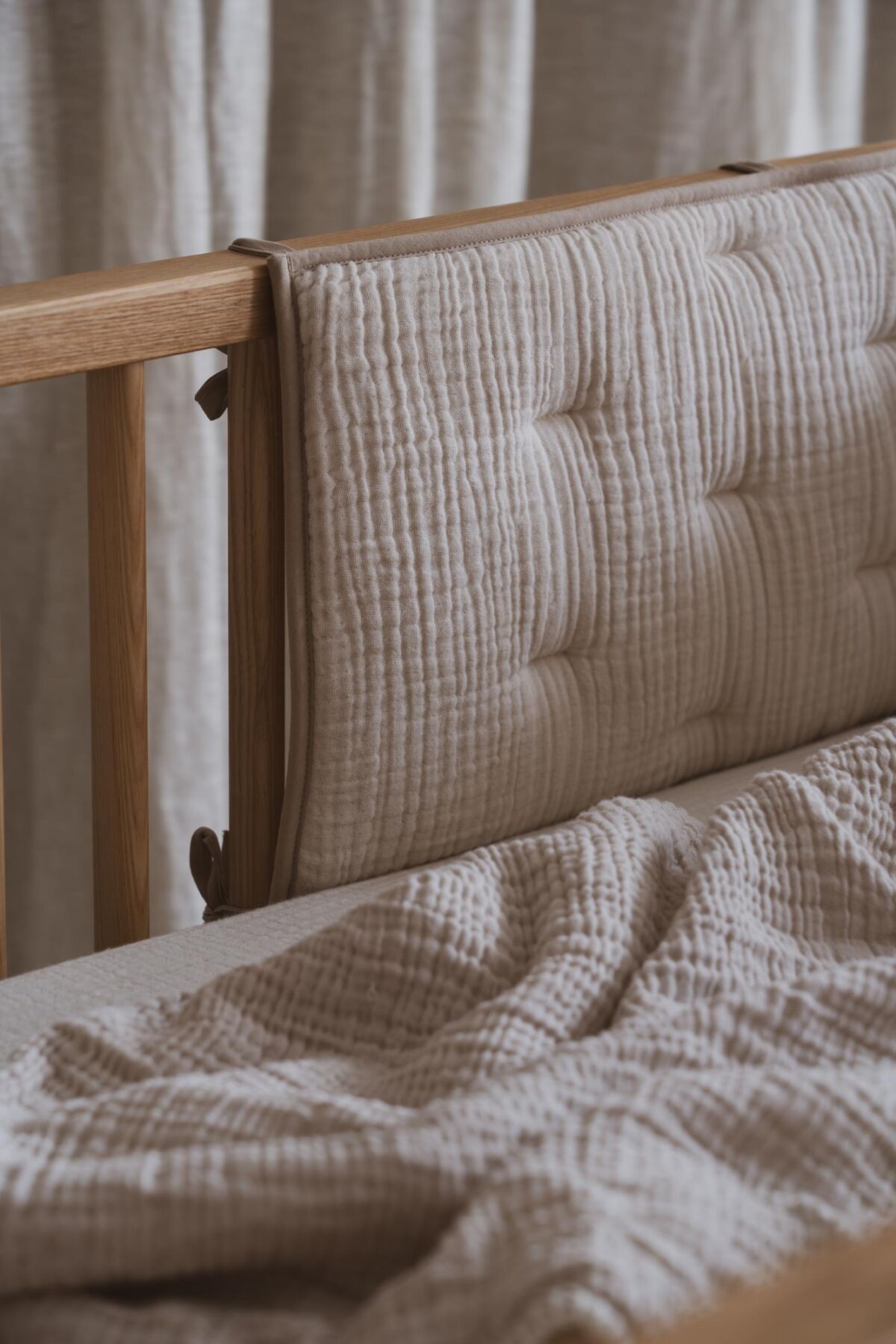 - The bumper is reversible, featuring a beautiful design on both sides. Choose from the lovely colors warm clay, subtle blossom, or soft yellow stripes, made from soft muslin cotton, for a luxurious and comfortable look.