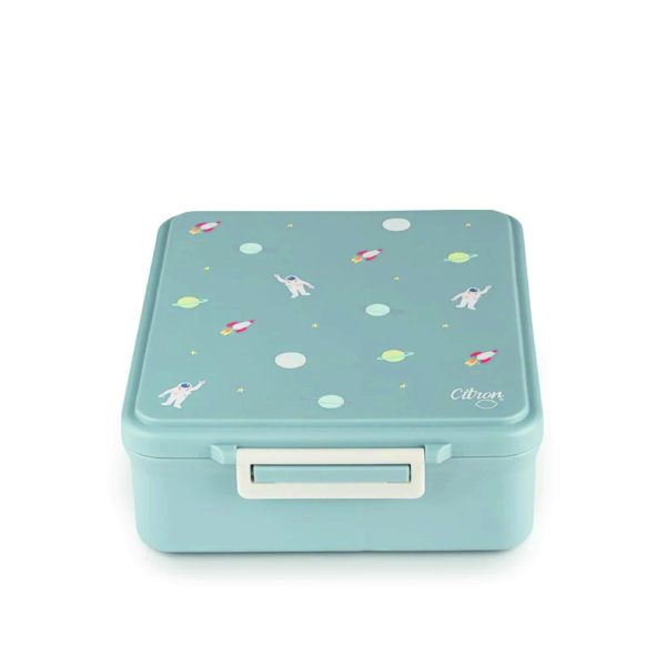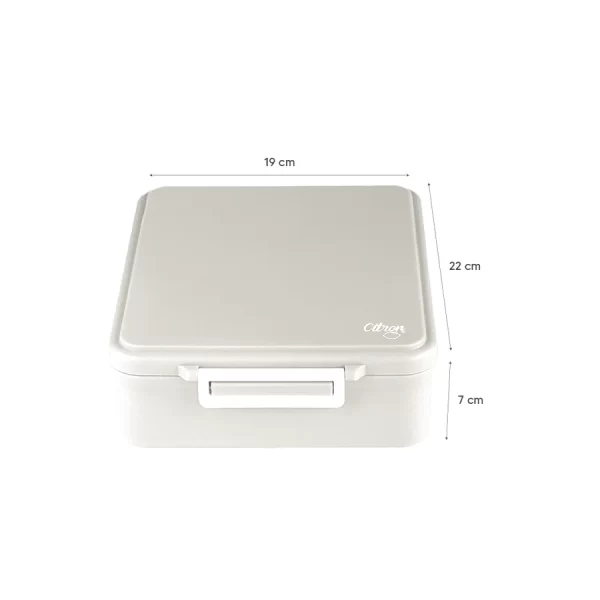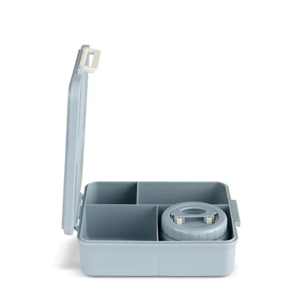 - Stores food in 4 separate compartments, in bento lunchbox style.
