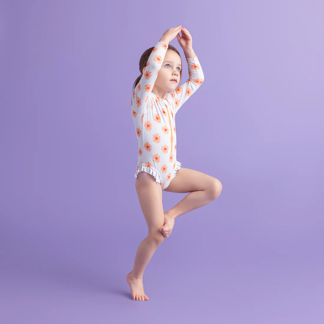 Complete the summer with the UV Swimsuit with long sleeves in Flower hearts print, ensuring they look great while being well-protected. Let the summer fun begin!