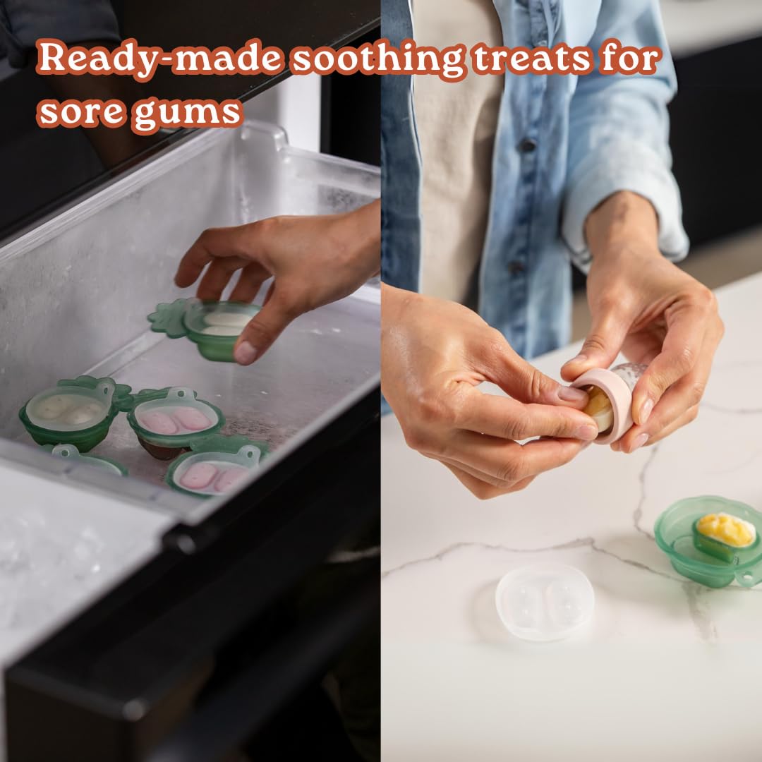 - Freeze breast milk or other favourites in the Nibble Tray to soothe tender gums.