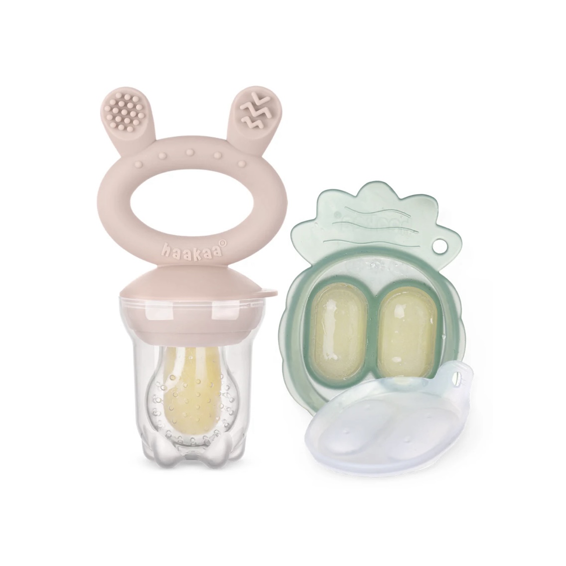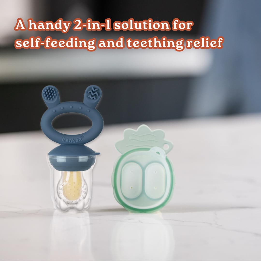 The Freeze-N-Feed Mini Combo is the perfect way to safely introduce new flavors to your baby while providing cooling relief for teething gums! Combining the always popular Fresh Food Feeder with a mini version of our Pineapple Nibble Tray, this combo freezes perfectly-sized portions of food, allowing your child to explore new flavors and textures without the risk of choking. This set is small enough to pop in your bag, so you’ll always have it to hand when you’re away from home. Best of all, the Freeze-N-Feed Mini Combo is super easy to use. Simply fill the Nibble Tray compartments with breast milk, puréed food, or other favorites and freeze. Pop one out when required and place in the Feeder pouch, assemble, and seal tight. For those who need more treats, the full-sized Pineapple Nibble Tray (sold separately) comes with a huge NINE compartments, keeping you going for longer! Your little one will enjoy having the ability to experience new tastes and textures and building independence, as well as getting soothing relief for their teething gums.