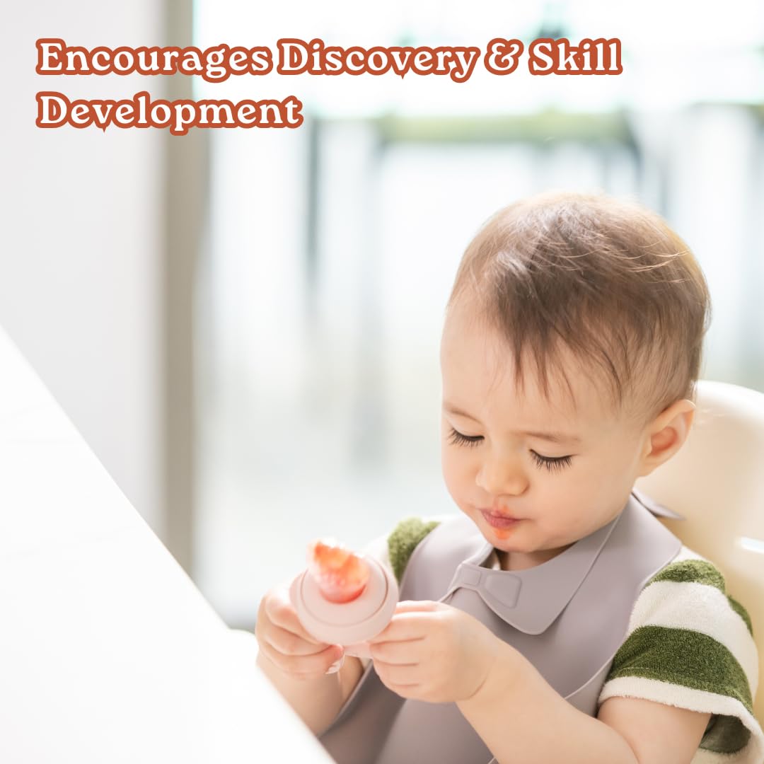 Soft silicone pouch with small holes that allow only tiny, digestible pieces of food to pass through. - Feeder has a secure lid to prevent choking hazards.