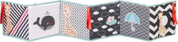 • The learning book adapts to the development of the child with a black and white page and a page in the colours of the Sophie the Giraffe