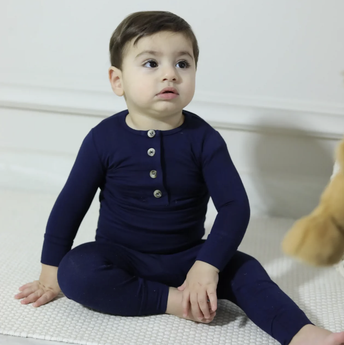Luna was born out of a new mom’s struggle to find high-quality, soft pajamas for her little one. Our fabric is sourced from India and, is made of 96% high-quality luxury bamboo, ensuring a hypoallergenic and buttery soft feel against your baby’s sensitive skin.