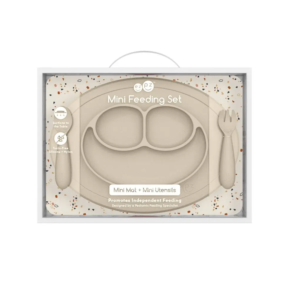 With the Mini Feeding Set (the Mini Mat, Mini Spoon and Mini Fork) ezpz provides all of the developmental tools you need for independent mealtime with your toddler.
