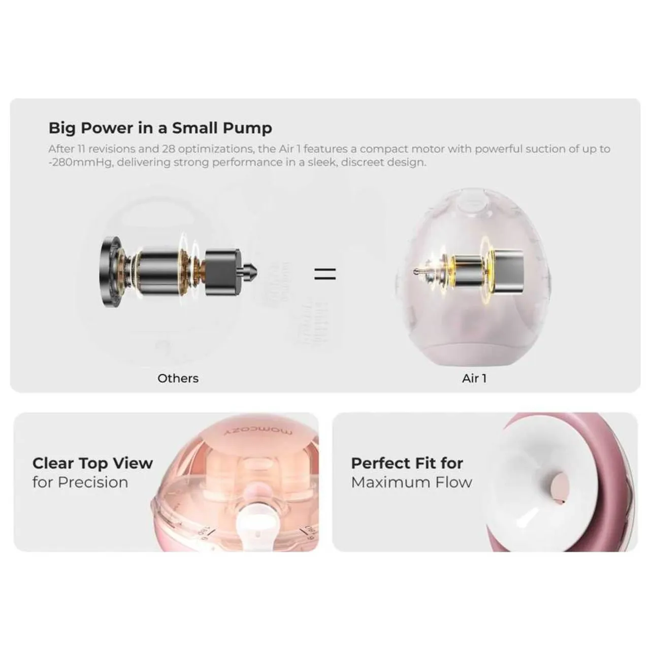 • The Momcozy Air 1 is a wearable pump with hospital grade power and smart app control.