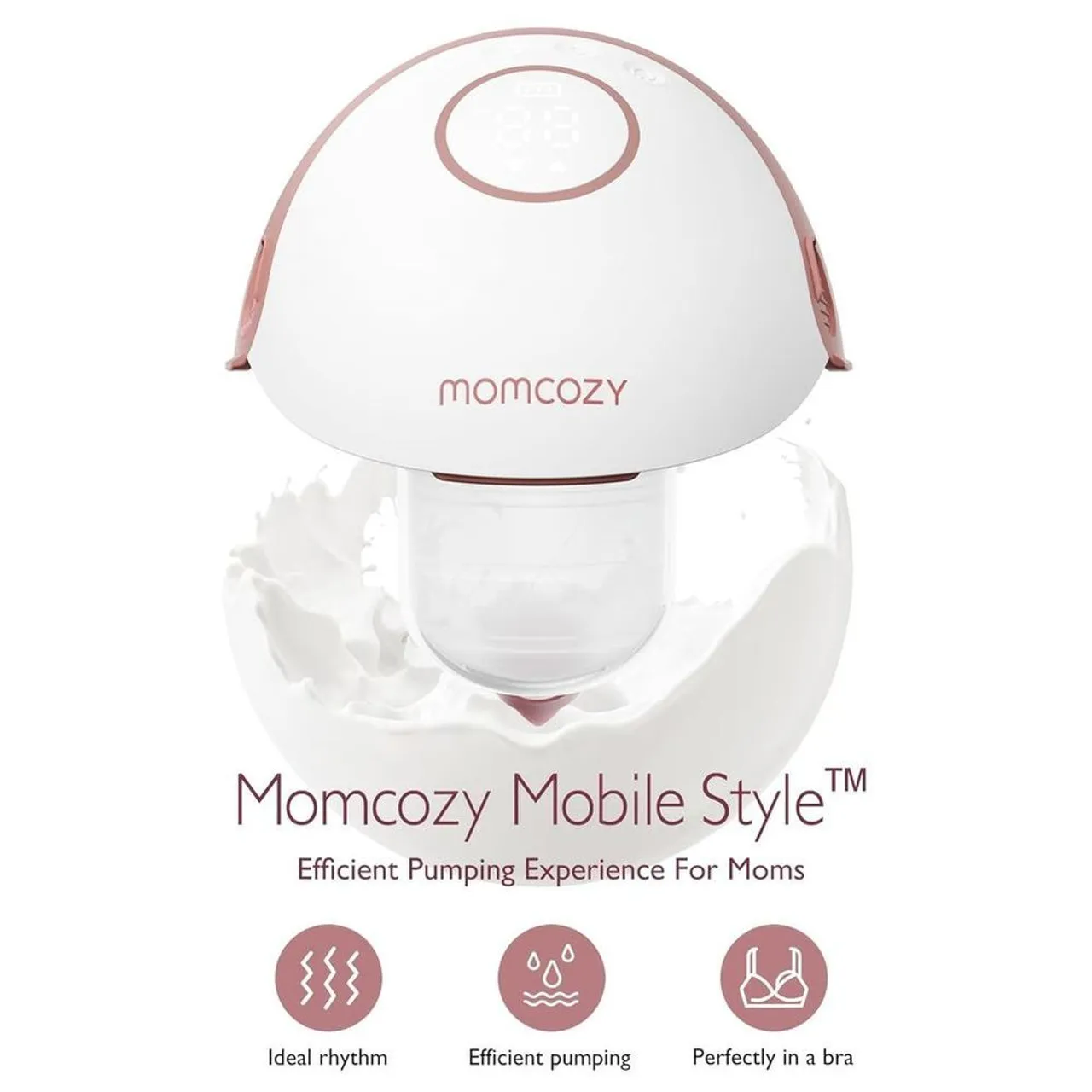 - Introducing the Momcozy Mobile Style Hands-Free Double Breast Pump M6 in Maroon, designed for cozy moms.