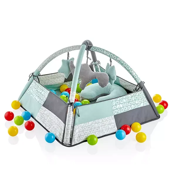 Babyjem 3 in 1 Playmat. It comes with a head pillow, balls, and toys.