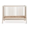 This cot features three adjustable mattress heights (29 cm, 44 cm, and 59 cm), making it easy to adapt to your growing baby’s needs. Supported by four sturdy legs made of solid beech wood, the cot exudes stability and durability, while the side panels made of melamine-faced chipboard and solid beech wood with spindles add timeless elegance to the nursery.