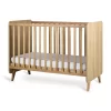 This cot features three adjustable mattress heights (29 cm, 44 cm, and 59 cm), making it easy to adapt to your growing baby’s needs. Supported by four sturdy legs made of solid beech wood, the cot exudes stability and durability, while the side panels made of melamine-faced chipboard and solid beech wood with spindles add timeless elegance to the nursery.