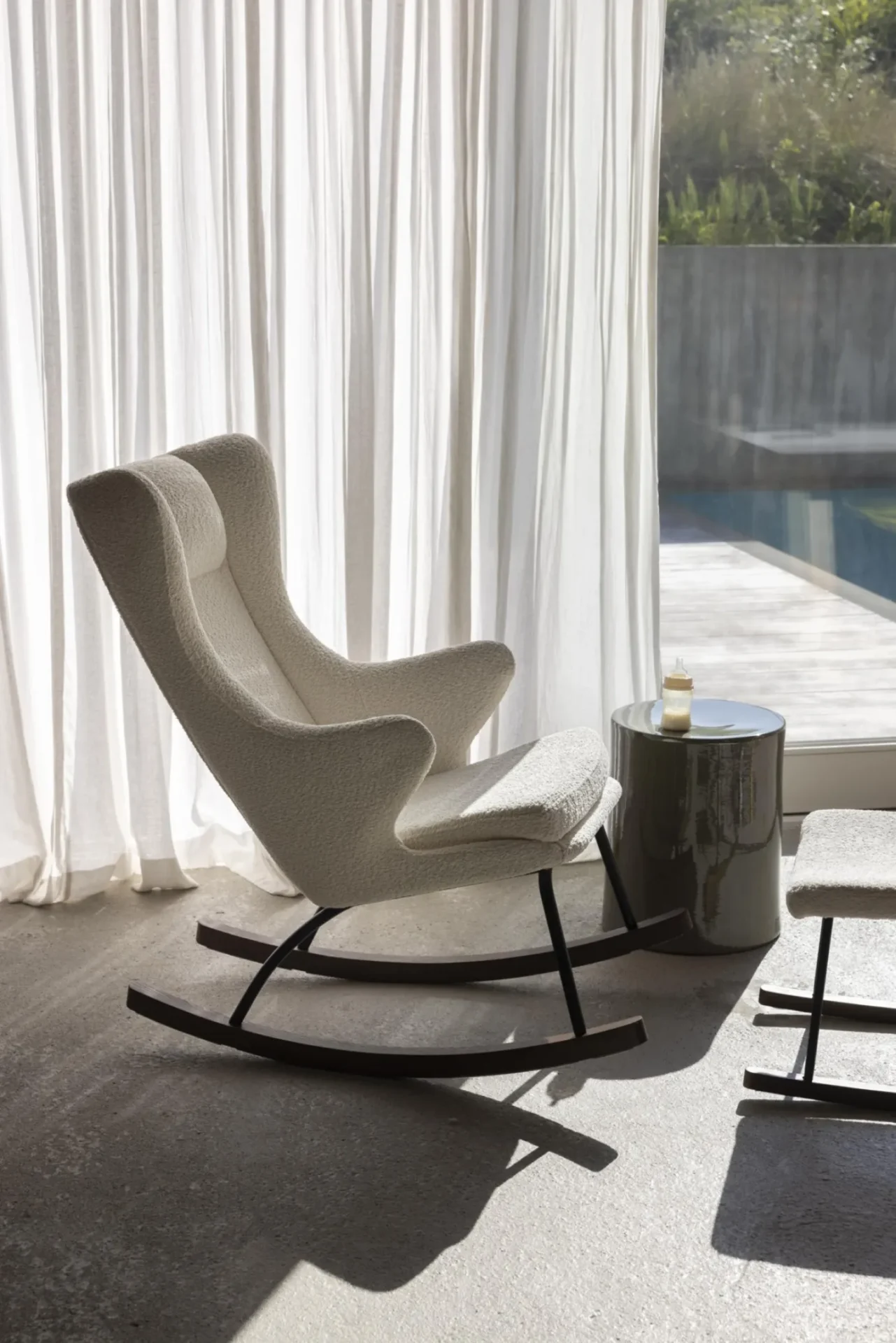 Comfortable design rocking chair with integers headrest and armrest. Provides the necessary while feeding, comforting and cuddling.