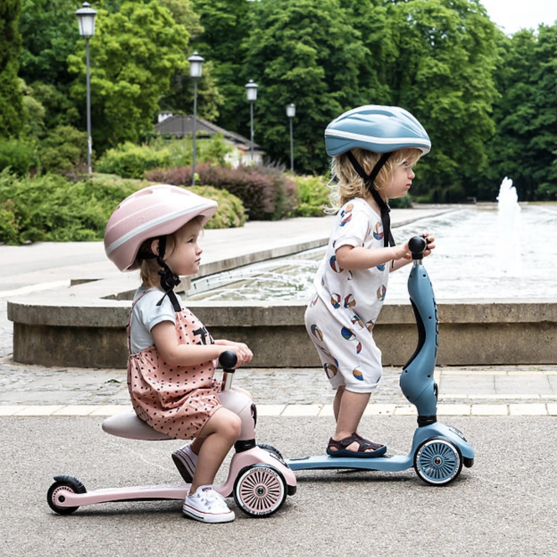 Young riders enjoy sitting on the comfortable seat and scooting around on stable wheels, where older children enjoy the faster pace of the standing scooter setting.