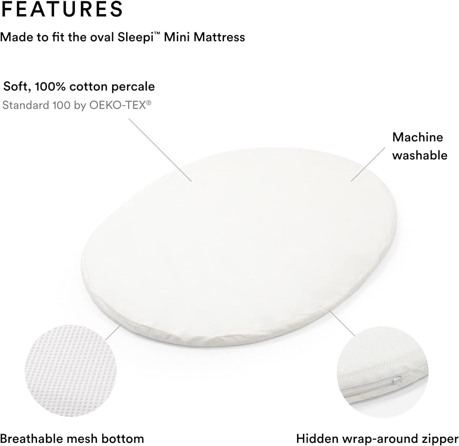 • Made to fit the oval Sleepi™ Mini mattress