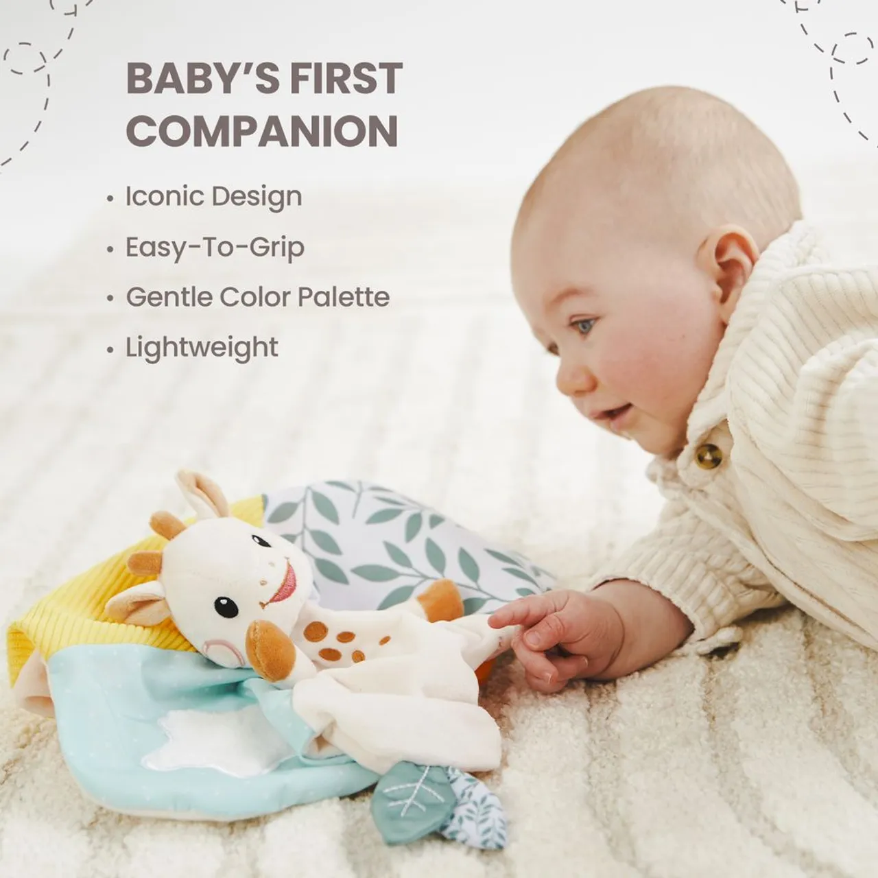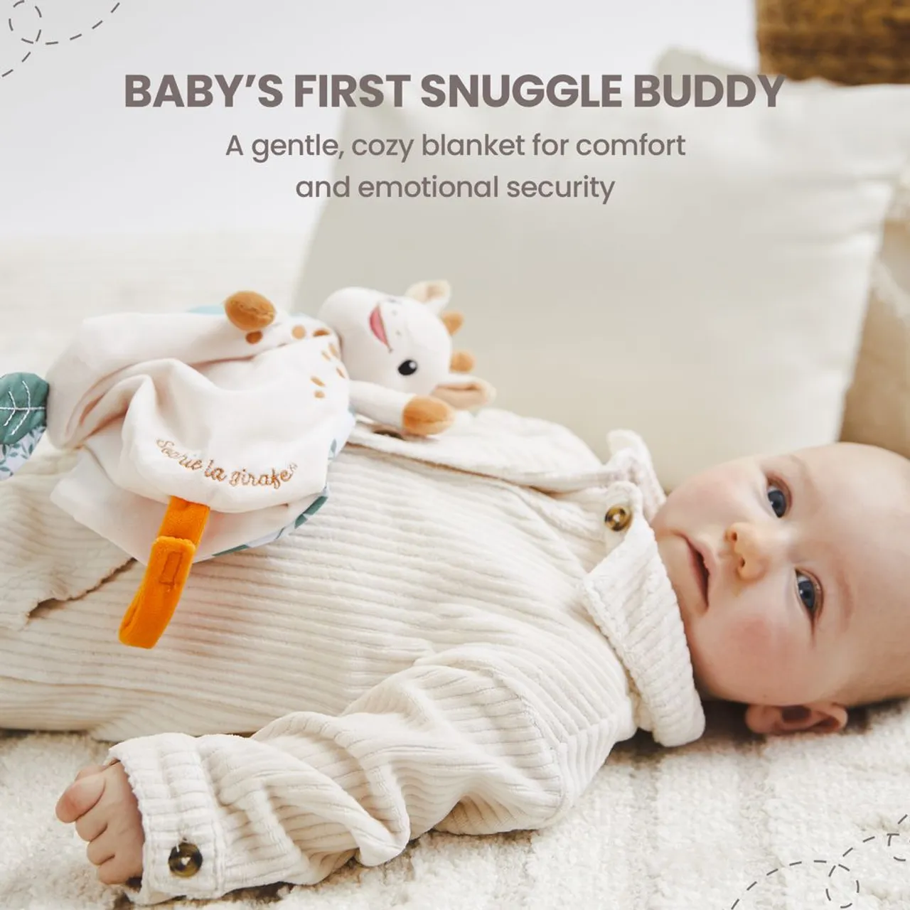 Inspired by the timeless charm of Sophie la Girafe, this comforter features delicate fabrics and a gentle colour palette, perfect for little ones. Lightweight and easy for tiny hands to grasp, it becomes a treasured companion at nap time, bedtime, or on-the-go.
