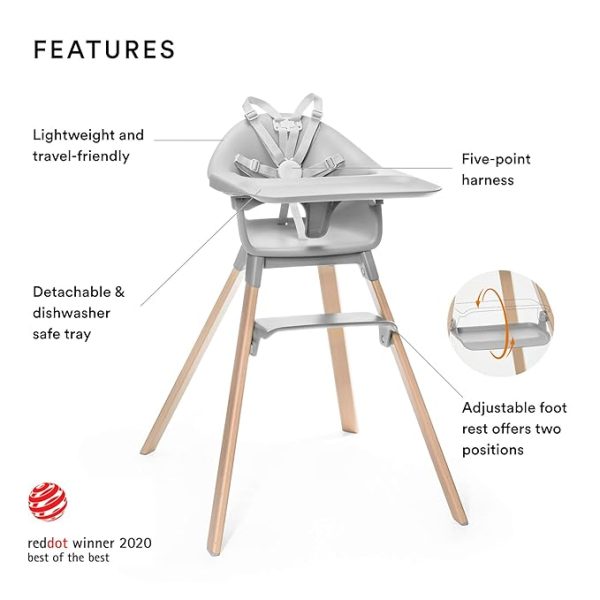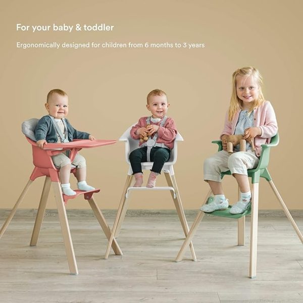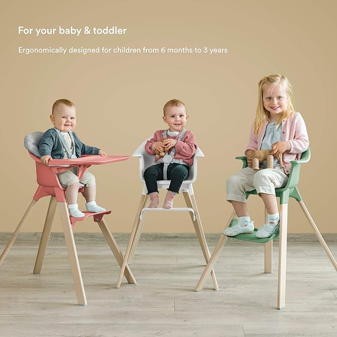The Stokke® Clikk™ High Chair with Tray and Harness is intended for children able to sit up unaided and up to 3 years or a maximum weight of 15 kg / 33lbs.
