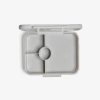 - Stores food in 4 separate compartments, in bento lunchbox style