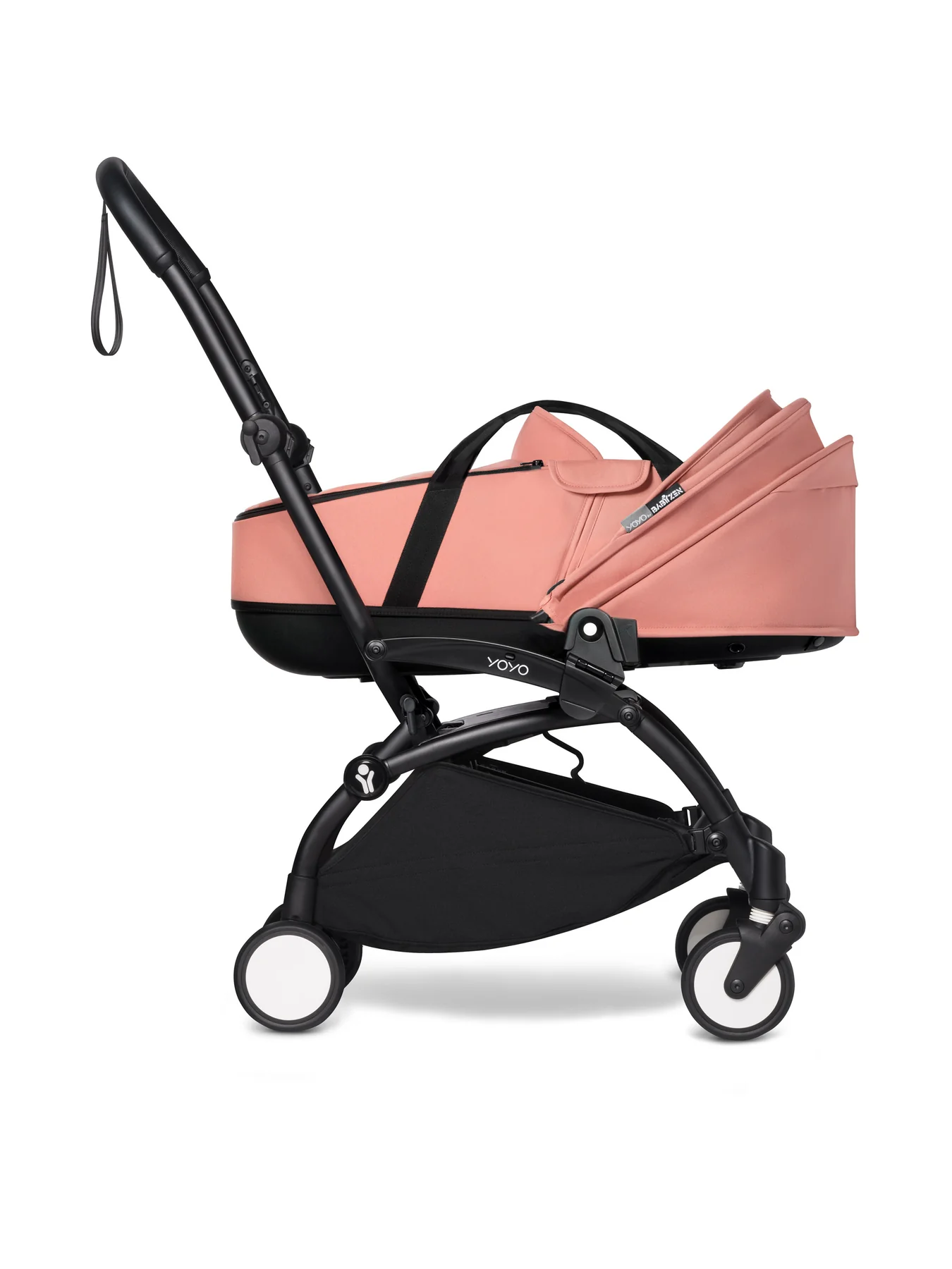 Whether it’s dinner at a friends’ or a visit to your parents’, all you need to do is unclip the bassinet from the frame and set it down to keep an eye on your baby. The YOYO² frame can be folded and carried over your shoulder while you carry the bassinet when walking back home. It’s the ideal way of transitioning between the outside world and your home. YOYO bassinet clips onto YOYO² and YOYO+ frames in a single click, can be carried by hand and set on the floor.
